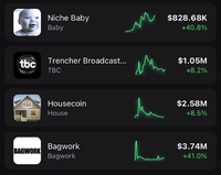 هذه العملات الممتعة تزداد زخما! $BABY +40.8٪ $TBC +8.2٪ $HOUSE +8.5٪ $BAGWORK +41.0٪