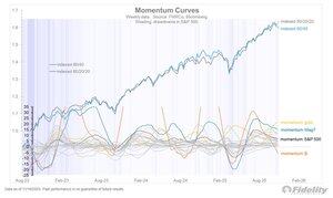 في الأسفل أعرض نفس فئات الأصول ولكن الآن كزخم سعري، والذي أستخدمه لاكتشاف المؤشرات الشاذة للزخم. مرة أخرى، أظهر الذهب زخما ممتازا رغم تصحيحه الكبير، بينما البيتكوين في الجانب الآخر.