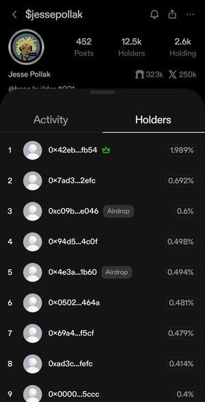هذه المحفظة سرقت $JESSE في أول ثانية من الإطلاق قبل 3 دقائق من مشاركة @jessepollak CA ربح 600 ألف دولار شكرا للعب