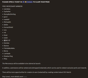 المبدعون الذين شاركوا في مكافأة محتوى OCH World - تحقق مما إذا كنتم قد ربحتم مرتزقا مجانيا!