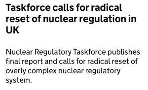 - إصلاح كبير لمشروع "أقل قدر ممكن من الواقعية" (ALARP)، وهو المبدأ الرئيسي للصحة والسلامة الذي أدى إلى الإفراط في تنظيم الطاقة النووية، بما في ذلك إلغاء مفهوم "عدم التناسب الجسيم".