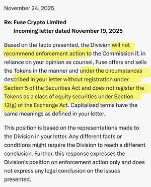 🚨عاجل: أصدرت هيئة الأوراق المالية والبورصات رسالة عدم اتخاذ إجراء إلى مشروع @fuseenergy، مشروع ديبين الذي يبني شبكة طاقة لامركزية في @Solana.