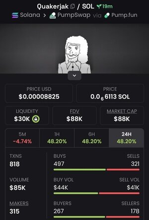 دخول CA: 3J9r2LMQ1EBTgZeHGu936CyH3LJ9yVYSZdrGnB4Vpump استثمرت في $QUAKERJAK بسعر 88 ألف💸 دولار Mcap 📍 تخليت عن الجواهر مبكرا في TG الخاص 📩 بي #SOL #SOLANA #MEMECOINS #PUMPSWAP #QUAKERJAK