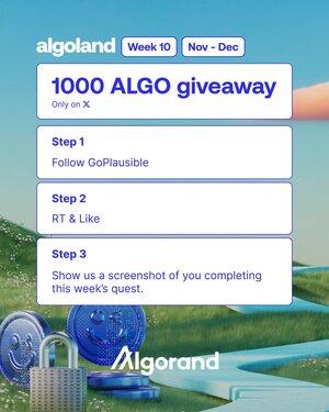 اربح 1000 ألجو إضافي هذا الأسبوع في ألجولاند! 1. اتبع @GoPlausible 2. RT & Like 3. رد أدناه مع دليل على أنك أكملت مهمة هذا الأسبوع