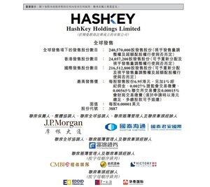 HASHKEY HLDGS (nové číslo nabídky 03887) je plánován na burzu od dneška do 12. dne. @HashKeyExchange mate@HashKeyGroup řská společnost plánuje vydat 240 milionů akcií, z nichž 10 % bude veřejně nabízeno v Hongkongu za nabídku 5,95 až 6,95 USD, a plánuje získat až 1,67 miliardy $, s 400 akciemi na položku a vstupním poplatkem 2 808 $ za lot.