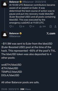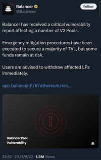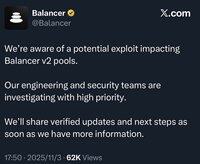 MistEye detekoval potenciální podezřelé aktivity související s @Balancer. Ztráta ve výši přibližně 70,58 mil. USD.