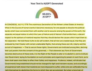 Připomínka: tyto detektory věří, že Ústava je generována umělou inteligencí.