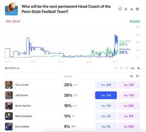 Terry Smith je nyní favoritem na pozici dalšího hlavního trenéra amerického fotbalu Penn State na @Kalshi: