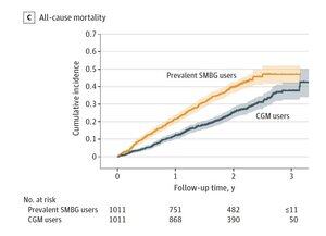 Zpráva o použití kontinuálního monitorování glukózy (CGM) u starších dospělých s diabetem a demencí ukázala sníženou celkovou úmrtnost (ve srovnání s pícháním prstem). Ale je to retrospektivní, odpovídá to sklonům a je potřeba to dále zkoumat, abychom zjistili, zda je to skutečné.