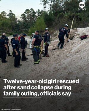 Rychlé myšlení otce a rychlá reakce texaských záchranných služeb zachránily dvanáctiletou dívku před tragédií na Den díkůvzdání, uvedli úředníci, poté co se dívka během rodinného výletu zasekla v písku.