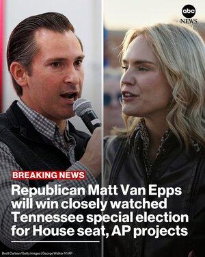 Republikán Matt Van Epps je podle agentury Associated Press předpokládaným vítězem pečlivě sledovaných zvláštních voleb na místo v Tennessee do Sněmovny reprezentantů USA za 7. kongresový obvod.