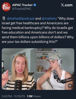 USA posílají Izraeli ročně 3,8 miliardy dolarů a utrácejí 5,6 bilionu dolarů (BILIONY) na zdravotní péči.