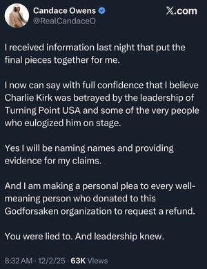 Charlie Kirk marginalizoval Candace Owens z TPUSA, takže teď se mstí tím, že se snaží zničit organizaci, kterou vybudoval.