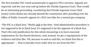 Minulý týden zasáhlo Floridu největší zvýšení cen elektřiny v historii státu, a to o 7 miliard dolarů. Hlasování o schválení zvýšení bylo jednomyslné a velká část z něj půjde na zisky akcionářů.