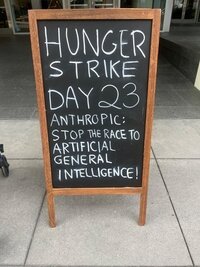 Posledních 23 dní každý den sedím před kancelářemi společnosti Anthropic, která vyrábí vyhasínající stroje, a mluvím s kolemjdoucími z ulice, kteří jsou překvapeni, když zjistí, že v neoznačených kancelářích za mnou sídlí společnost vyrábějící umělou inteligenci, jejíž generální ředitel Dario Amodei věří, že závod, kterého se účastní, představuje riziko 1 ku 4, že zničí samotnou jejich civilizaci. Zdá se, že tento generální ředitel je spokojen s tím, že nechá tuto oponu ignorance zasahovat mezi sebe a svou práci a lidi na ulici, kteří nevědí, že bezohledně a vědomě hazarduje s jejich životy – životy svých vlastních sousedů a svého národa. Zjevně necítí žádnou odpovědnost za to, aby volal po okamžitých a účinných vládních opatřeních k ukončení tohoto globálního závodu, jehož je jedním z hlavních architektů a příjemců prospěchu, žádnou povinnost zajistit, aby jeho země pochopila naléhavé a vážné nebezpečí, v němž se nachází.