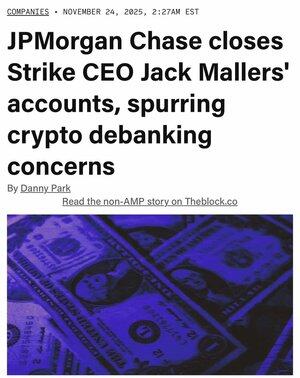 Generální ředitel Strike Jack Mallers říká, že JP Morgan zrušil všechny své bankovní účty bez JAKÉHOKOLIV varování.