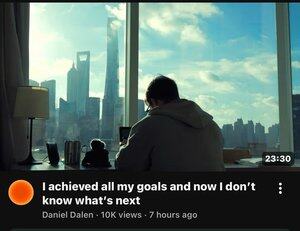 Pokud je vaším životním cílem "stát se milionářem, nebo dokonce miliardářem", "stát se slavným", možná se tam skutečně dostanete... jen abych si uvědomil, že pohled shora vás stojí zdraví, vztahy a většinu života.