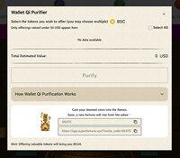 Nenechte nekvalitní tokeny blokovat váš tok. 🧹 Purifier peněženky Qi vám umožní snadno se zbavit nechtěných tokenů. Proměňte digitální prach v bohatství. 💰 Zkuste to teď: