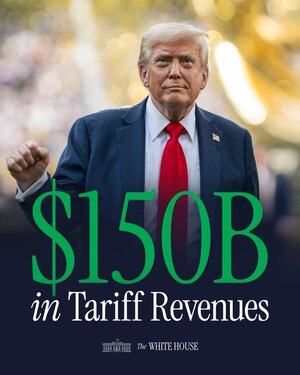 Díky vedení @POTUS vygenerovaly USA za posledních 6 měsíců příjmy z cel ve výši více než 150 miliard dolarů. 💸