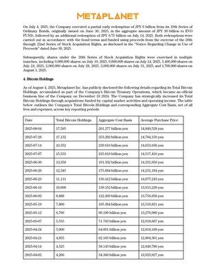 *Metaplanet získává dalších 463 $BTC, celková držba dosahuje 17 595 BTC*