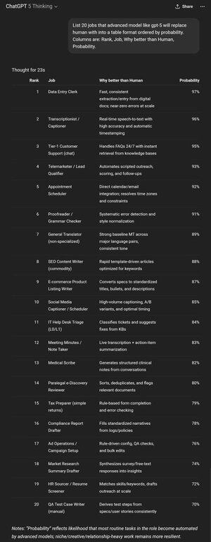 20 pracovních míst, která GPT-5 nahradí lidské, podle GPT-5