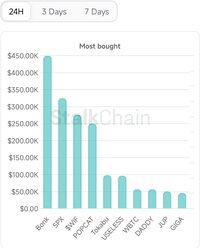🚨 $BONK ( @bonk_inu) je podle Stalkchainu nejvíce kupovaným tokenem chytrých peněz za posledních 24 hodin a 3 dny.