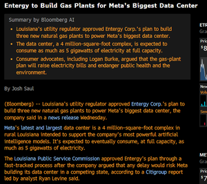 Společnost Entergy ($ETR) postaví plynové elektrárny pro největší datové centrum v $META