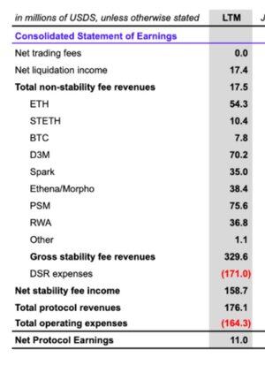 Zapomněl jsem dodat: Na 12měsíční bázi @SkyEcosystem dosáhl zisku pouze 11 milionů dolarů. Dashboard na konci 2. čtvrtletí 2024 předpokládal anualizovaný zisk ve výši 97,8 mil. USD (bez nákladů na SKY/MKR).