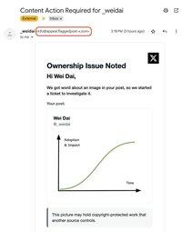 PSA: Probíhá phishingový útok, maskovaný jako upozornění na autorská práva k obsahu X.