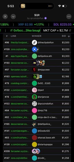 Včera proběhla naše 35. aukce $QR o minimálně 1 000 $ @qrcoindotfun.