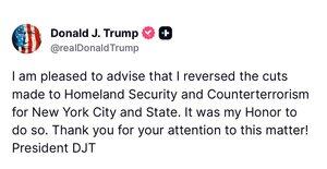 Trump, o dva dny později: "Zrušil jsem škrty... Bylo mi ctí tak učinit."
