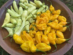 Sklidil jsem dostatek broskví Sugar Rush a paprik Goronong (malajské Habanero) na dnešní výlov modré velryby