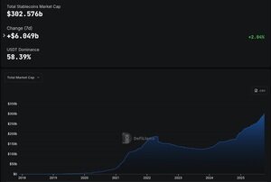 Celková tržní kapitalizace stablecoinů oficiálně překročila $300 miliard a dosáhla $302,57 miliardy, což je nové historické maximum pro tento sektor.
