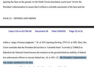 Soudce IMMERGUT, Trumpem jmenovaný soudce, rozhodl, že Trumpovo povolání bylo založeno na nepravdivých tvrzeních o nepokojích v Portlandu a že Trumpovy vlastní výroky byly "jednoduše nesouvisející s fakty".