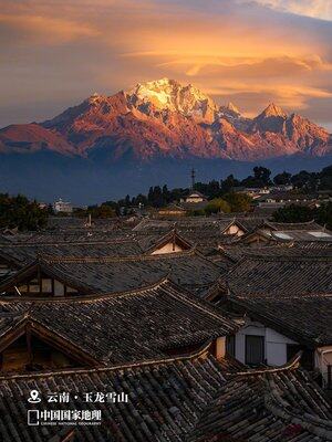 Sněhová hora Nefritového draka s výhledem na město Lijiang, Čína.