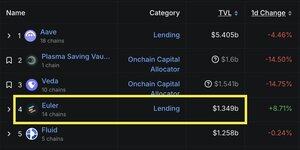 Euler překročil 1 miliardu dolarů na plazmě. Nyní na čísle 4. S @pendle_fi PT smyčkami se TVL bude více zvyšovat. @Plasma X @eulerfinance
