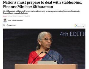 Zákon GENIUS rychle mění globální finanční systém. Indie má už dlouho kapitálové kontroly, které jí umožňují pomalý pohyb v některých dimenzích změn a adaptace. Rozsah a tempo tokenizace je odlišné a zdá se, že indický ministr financí to dobře chápe: "Inovace, jako jsou stablecoiny, mění prostředí peněžních a kapitálových toků. ... Tyto posuny mohou donutit národy učinit binární rozhodnutí: přizpůsobit se nové monetární architektuře nebo vyloučit riziko."