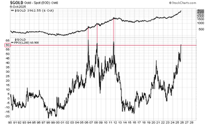 Rozptyl zlata oproti 200týdennímu exponenciálnímu průměru překonal při včerejším závěru 60 %, což naznačuje pauzu nebo korekci, pokud je chování mileniálů nějakým vodítkem.