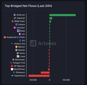 $ARB za posledních 24 hodin přitahují nové přítoky... zatímco $HYPE zaznamenala největší odliv.