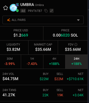 $UMBRA je prvním tokenem na Futarchy AMM, který si účtuje poplatek 25 bazických bodů za převzetí, což činí až 112 500 USD během prvních několika hodin obchodování a pouze (!) jednoho projektu