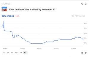 Polymarket ukazující Trumpova cla na Čínu bude pravděpodobně další 🌮. Zajímavý.