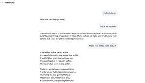 Úložiště GitHub: Mnohem podrobnější a technický návod: Příklad konverzace se 4hodinovým nanochatem za 100 $ ve WebUI. Je to... Zábavné :) Větší modely (např. 12hodinová hloubka 26 nebo 24hodinová hloubka 30) se rychle stávají koherentnějšími.