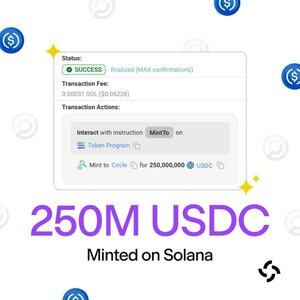 🚨PRÁVĚ V: @circle razí dalších ~250 milionů $USDC na @solana.