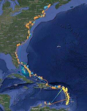 5/50 Během téměř čtyř let života na moři jsme urazili více než 11 000 námořních mil (20 000 km nebo 12 500 pozemních mil) a propluli 24 kraji/teritorií, přičemž jsme spustili háček na 430 kotvištích.