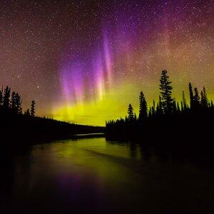 23/50 Ve stejnou dobu 'Crooked River Aurora', vzácná modrofialová polární záře ve vysokých nadmořských výškách, v mé sbírce Intrepid Nights prodána do úžasného @doclyndems.