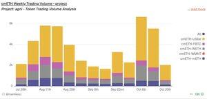 V říjnu zaznamenala společnost cmETH konzistentní objemy obchodů ve svých poolech likvidity, přičemž během prvních dvou týdnů došlo k výraznému nárůstu.