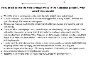 Každých několik měsíců @autonolas nejangažovanější členové komunity dávají dohromady zpětnou vazbu pro hlavní přispěvatele.