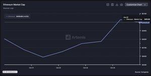 Tržní kapitalizace $ETH dosahuje 499 miliard USD, což je o 4 % více než minulý týden. Blížíme se k této půlbilionové hranici.