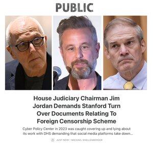 Stanfordské centrum pro kybernetickou politiku se v loňském roce zdálo, že se z cenzurního byznysu stáhlo. Nestalo se tak. A nyní republikán Jim Jordan požaduje, aby mu vydala dokumenty týkající se jeho nově odhaleného a možná i nezákonného zahraničního cenzurního schématu.