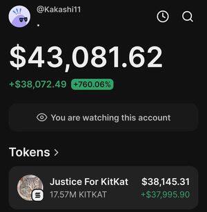 Tato peněženka je nyní v zisku 42 000 USD na $Kitkat po nákupu 924 USD, který se dosud prodal za 4 670 USD.